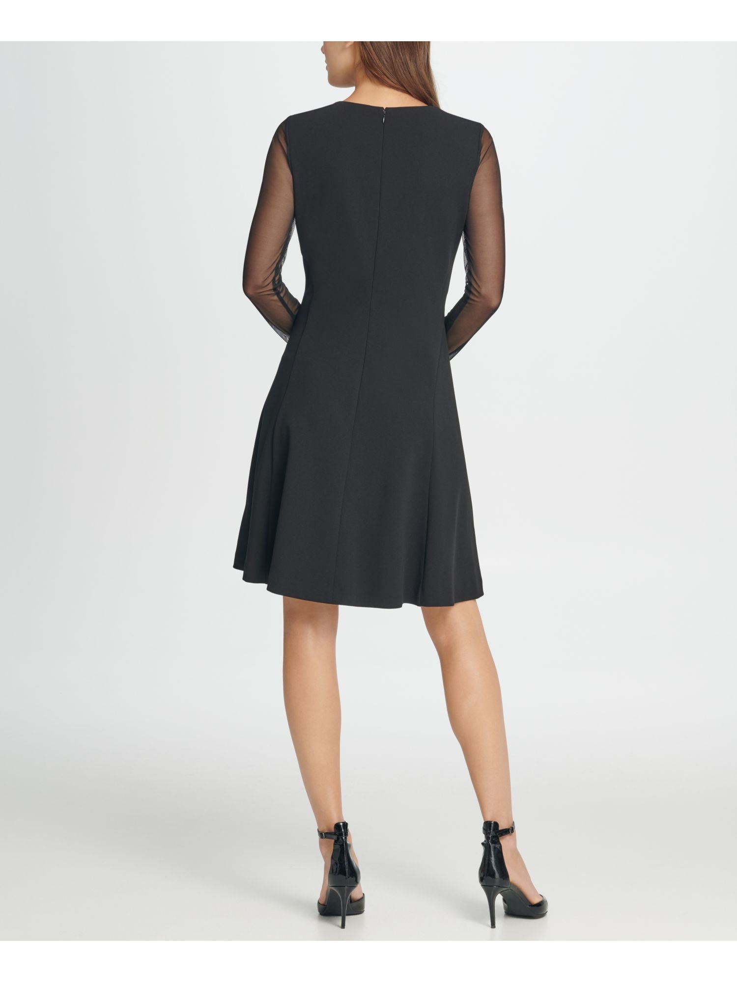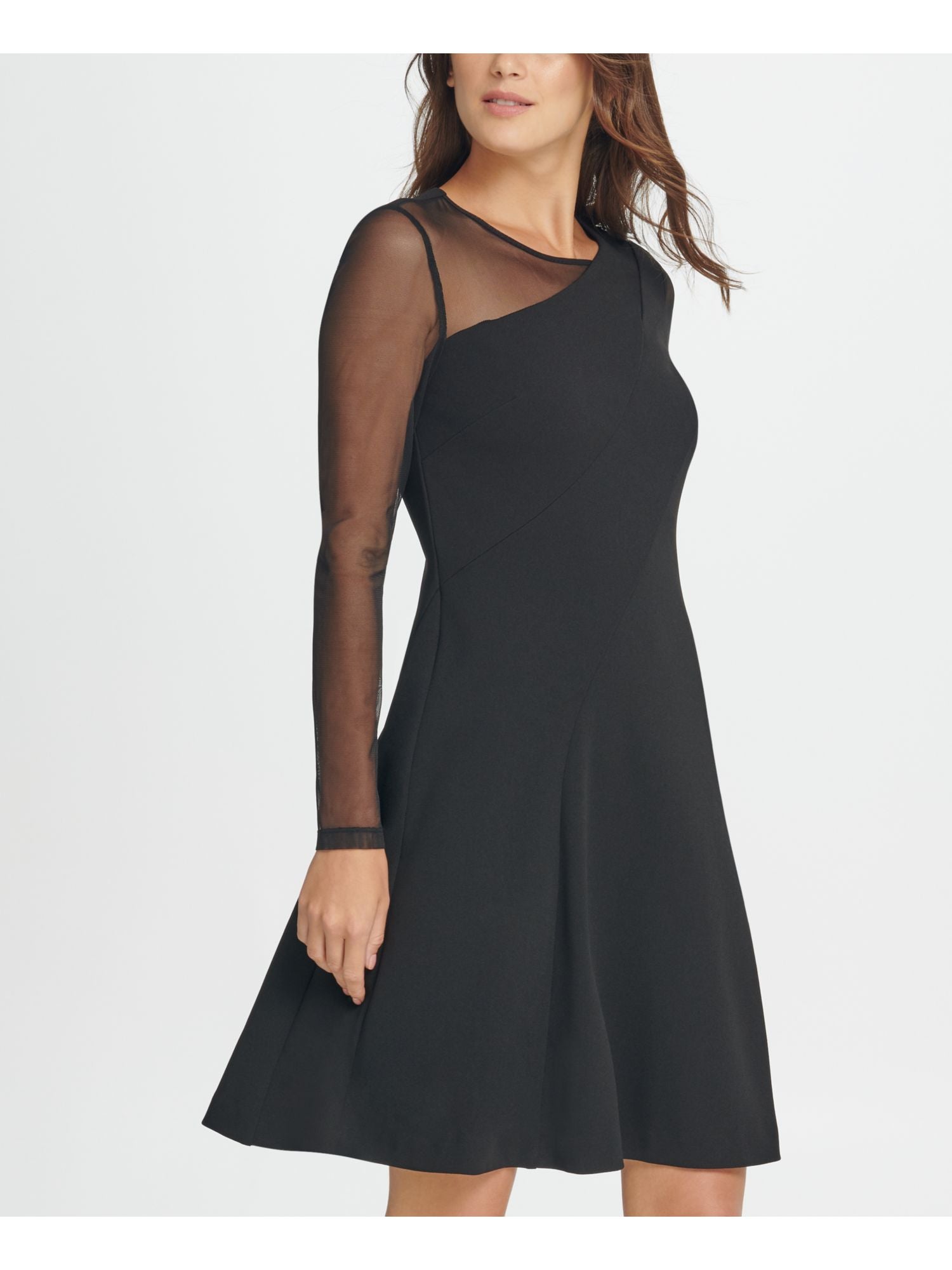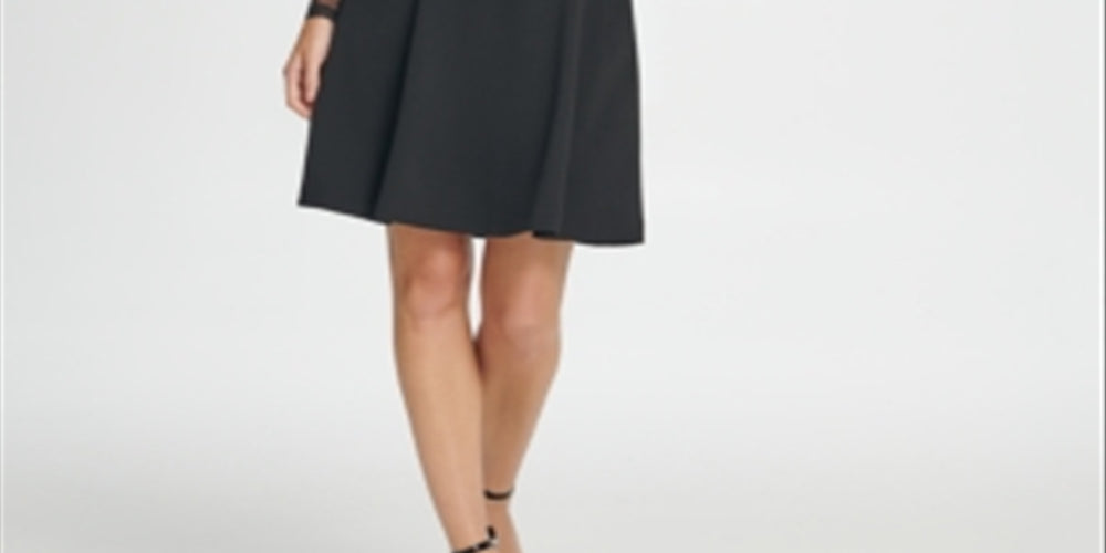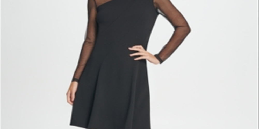 DKNY Women's Long Sleeve Jewel Neck Short Fit Flare Party Black Size 12