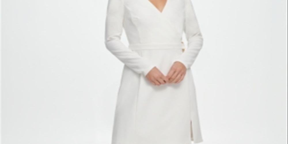 DKNY Women's Long Sleeve V Neck Short Sheath Wear to Work Dress White Size 14