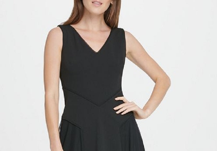 DKNY Women's Mesh Skirt MIDI Flare Dress Black Size 6