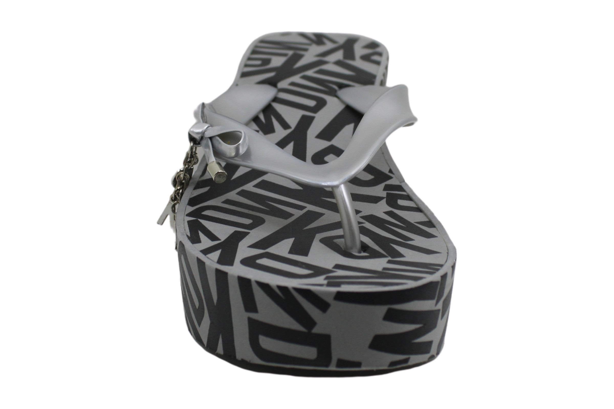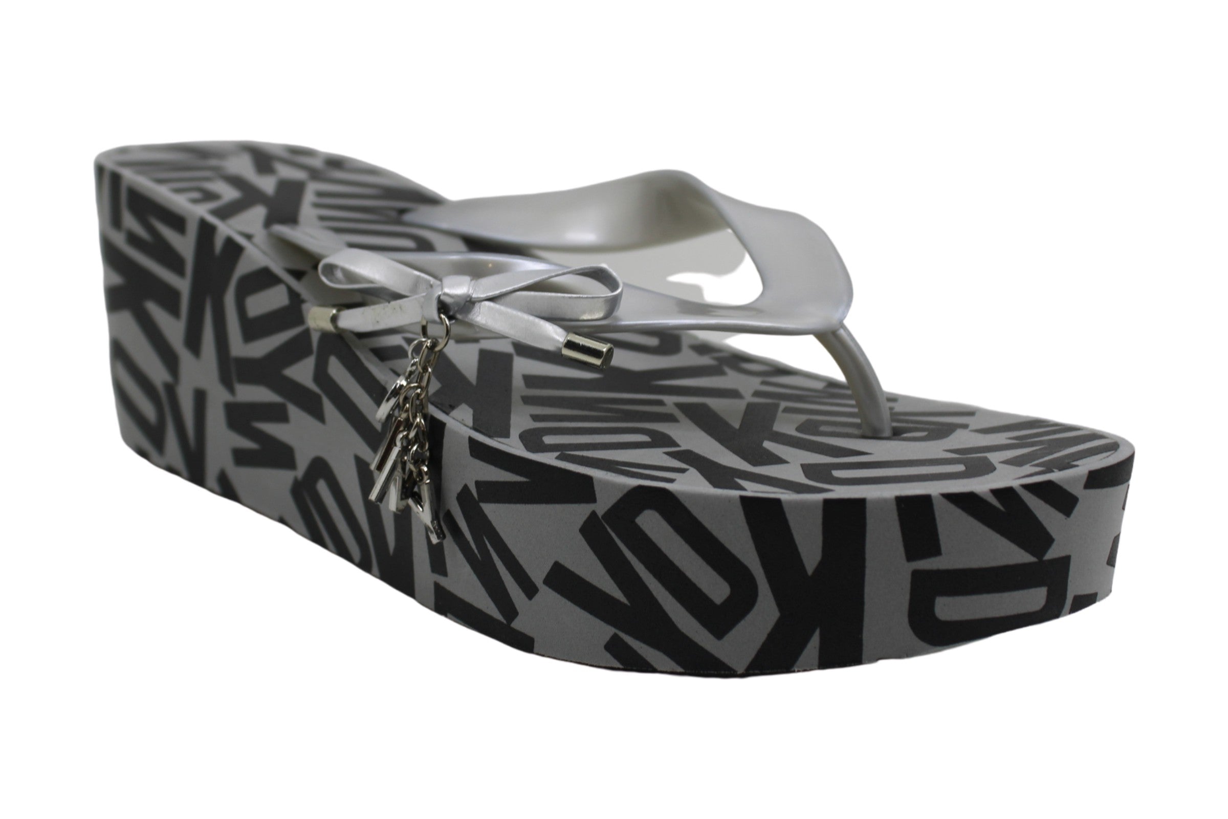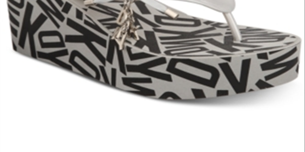 DKNY Womens Nola Wedge Sandals Thong Slip on Silver Size 9M