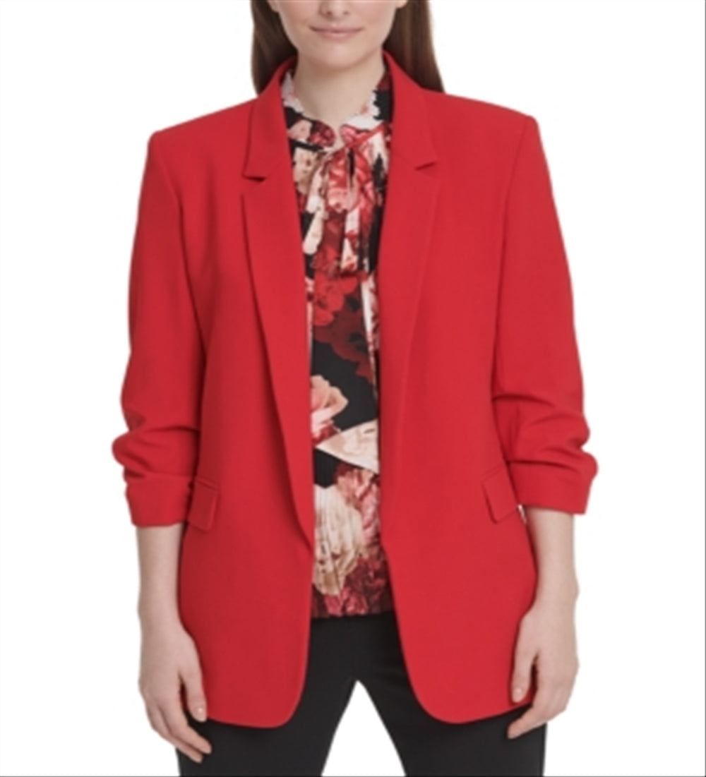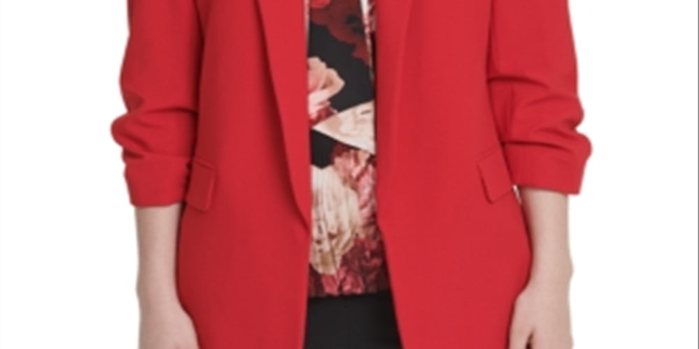 DKNY Women's Ruched Sleeve Blazer Red Size 0