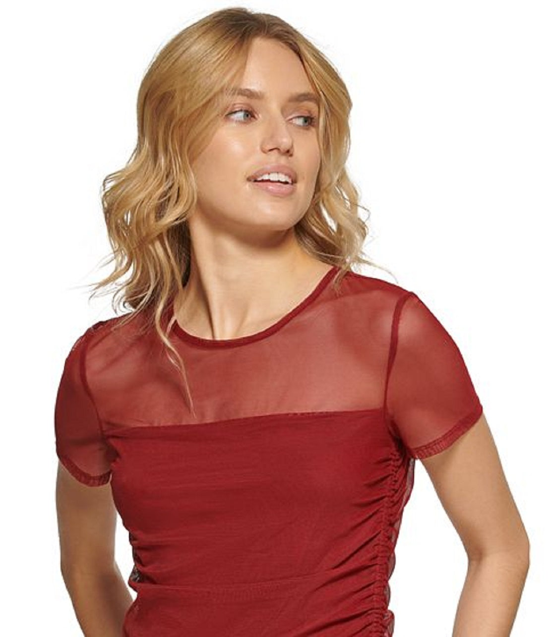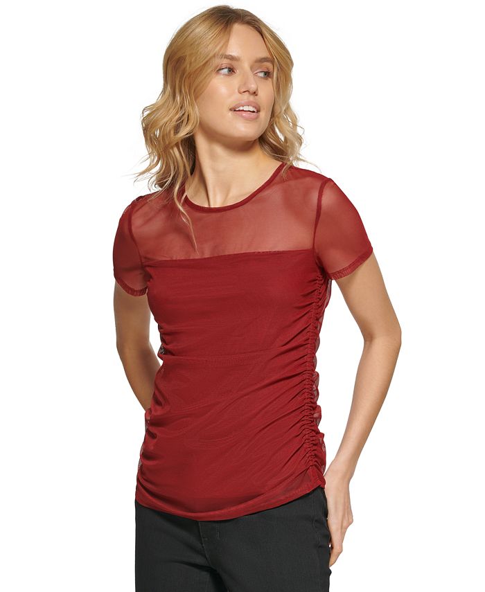 DKNY Women's Sheer Yoke Mesh Top Purple