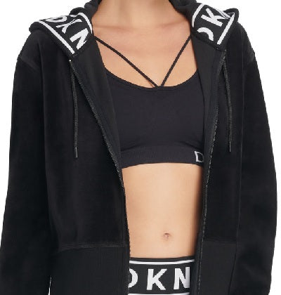 DKNY Women's Sport Logo Cuff Zip Hoodie Black Size S