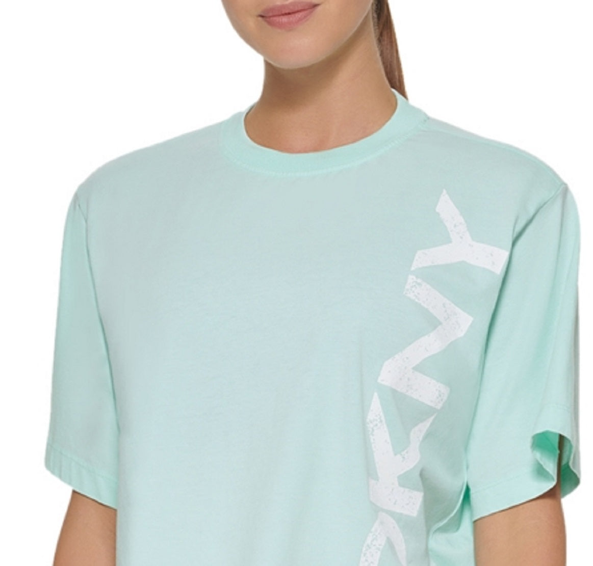 True to hue| this pigment dyed crewneck tee from DKNY Sport promises optimal comfort and endless styling opportunities. | Crewneck; logo print at front| All cotton| Machine washable| Imported