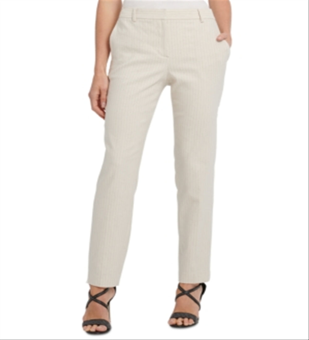 DKNY Women's Striped Flat Front Straight Leg Dress Pants Brown Size 6