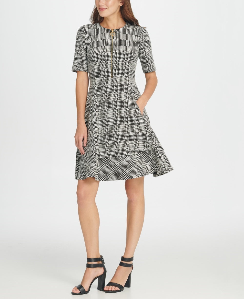 Dkny Women's Texture Knit Zipper Fit & Flare Dress Gray Size 6