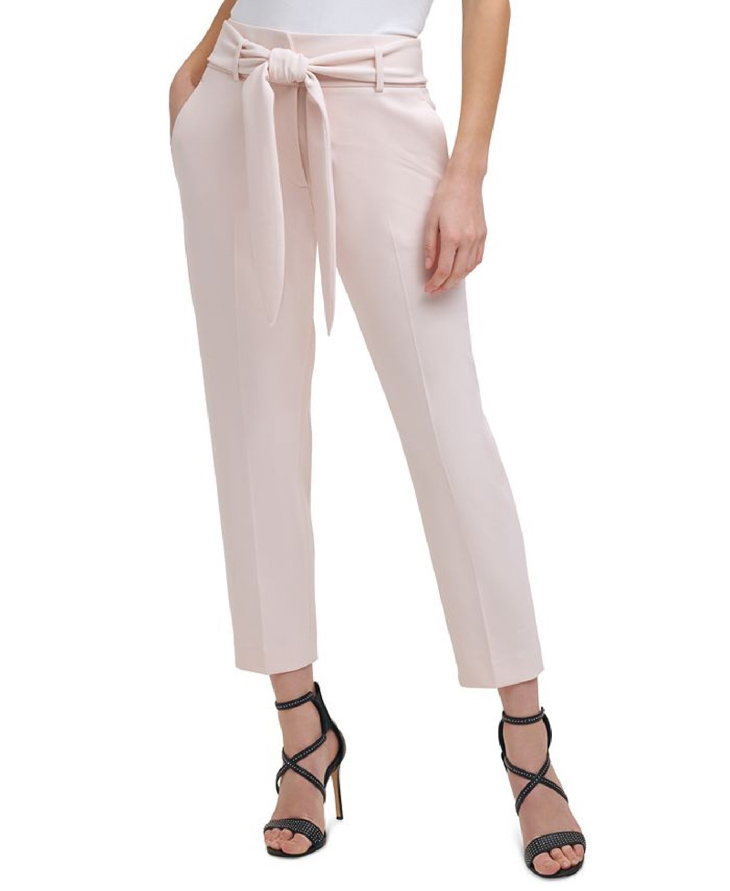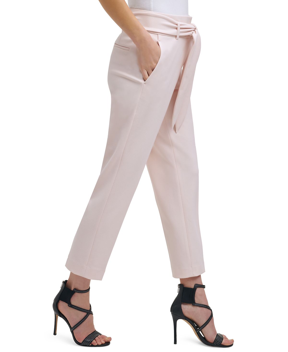 A perfect way to update your office wardrobe| these DKNY pants feature a tied waist for a finished look.| Approx. inseam; 26| High rise| Zipper and hook-and-eye closure at front; belt loops | Self-tie belt