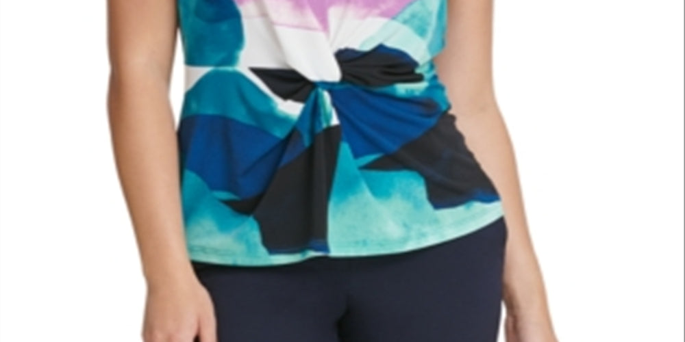 DKNY Women's V Neck Knotted Twist Top Black Size X-Large