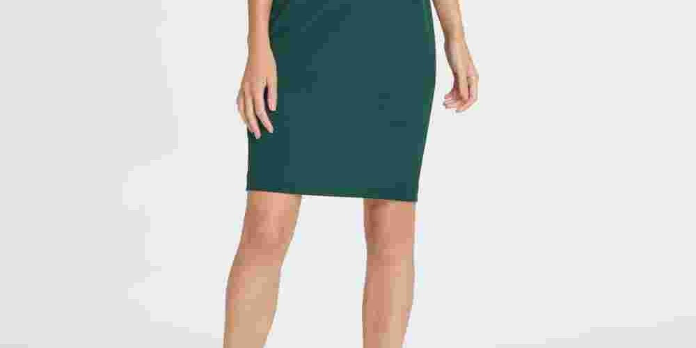 Approx. 36-1/2" long from center back neck to hem. Length is based on size 4 and varies approx. 1/4'' between sizes|V neck|Back zipper closure|Scuba crepe is a great stretch fabric that holds it's shape, and elevates any outfit.|Polyester/spandex