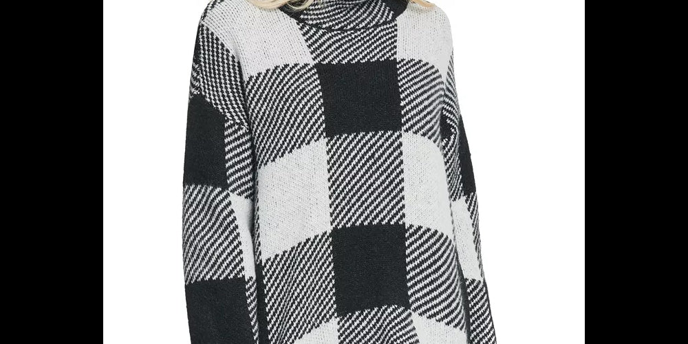 DKNY Women's White Plaid Long Sleeve Turtle Neck Sweater White Size Medium