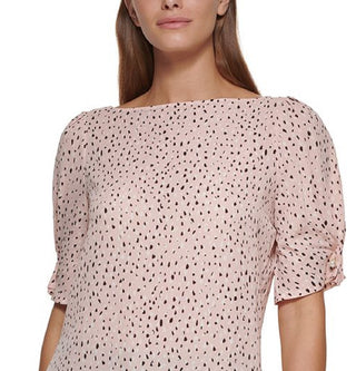 DKNY Women's Printed Elbow Sleeve Blouse Pink Size X-Large