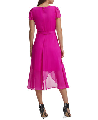 DKNY Women's Flutter Faux Wrap Chiffon Dress Purple Size 6 Petite
