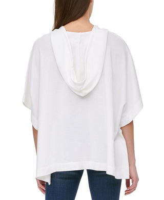 DKNY Women's Logo Poncho Hooded Sweatshirt White Size Medium