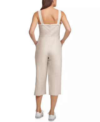 DKNY Women's Striped Belted Wide-Leg Jumpsuit White Size Extra Large
