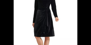 DKNY Women's Long Sleeve Jewel Neck Knee Length Sheath Dress Black Size Large
