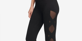 DKNY Women's Sport High Rise Mesh Inset Yoga Ankle Leggings Black Size X-Small