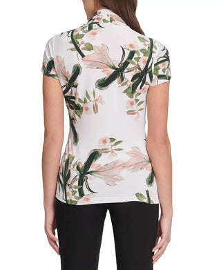 DKNY Women's Floral-Print Ruched Top White Size X-Large