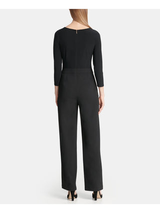 DKNY Women's 3/4 Sleeve Jewel Neck Straight Leg Jumpsuit Black Size 6