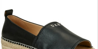 DKNY Women's Mer Leather Peep Toe Casual Espadrille Sandals Black Size 6.5