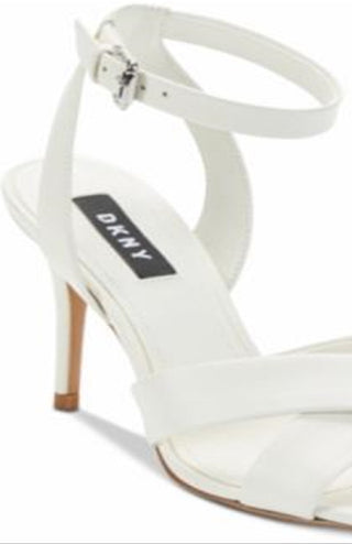 DKNY Women's Leather Open Toe Ankle Strap Classic Pumps White Size 7.5