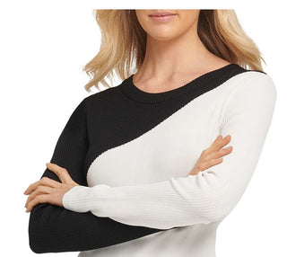 DKNY Women's Colorblocked Asymmetrical Sweater White Size Medium