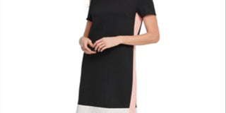 DKNY Women's Color Block Short Sleeve Jewel Neck Knee Length Shift Wear to Work Dress Black Size X-Large
