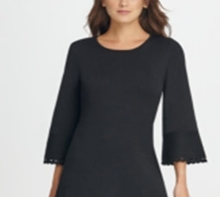 DKNY Women's Bell Sleeve Jewel Neck Short Shift Dress Black Size L