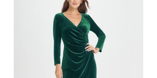Dkny Women's Velvet Side Ruche Sheath Dress Green Size 10