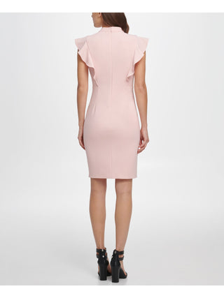 DKNY Women's Solid Cap Sleeve Keyhole Above the Knee Fit Flare Evening Dress Pink Size 16