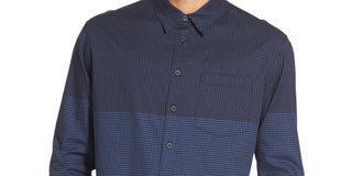 Dkny Men's Two Tone Gingham Shirt Blue Size Small