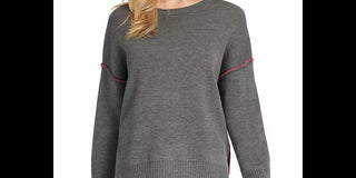 DKNY Women's Contrast-Trim Double-Knit Sweater Gray Size Large