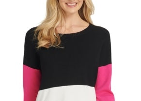 DKNY Women's Colorblock Ribbed Trim Crewneck Sweater Black Size S