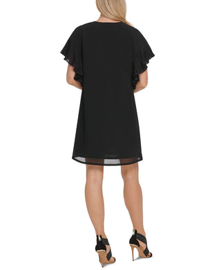 DKNY Women's V Neck Shutter Pleat Party Dress Black Size Medium