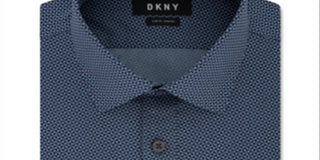 DKNY Men's Slim Fit Stretch Mini Check Dress Shirt Blue Size 17.5X32X33