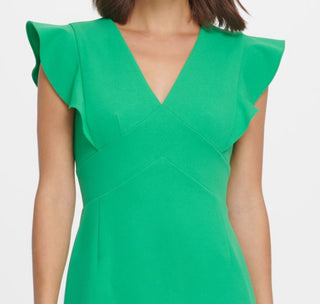DKNY Women's Zippered Cap Sleeve V Neck Short Sheath Cocktail Dress Green Size 14