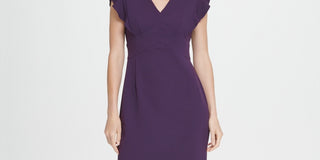 DKNY Women's V Neck Ruffle Cap Sleeve Sheath Dress Purple Size 2