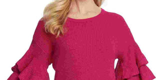 DKNY Women's Metallic Ruffle-Sleeve Sweater Pink Size X-Large