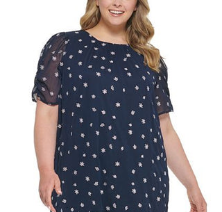 DKNY Women's Embroidered Calf Midi Dress Blue Size 22W