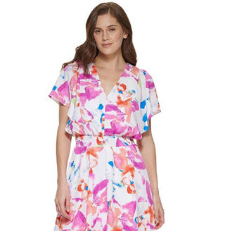 DKNY Women's Printed Tie V Neck Black Size X-Small