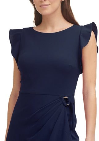 DKNY Women's Gathered Waist Flutter Sleeve Dress Blue Size 10