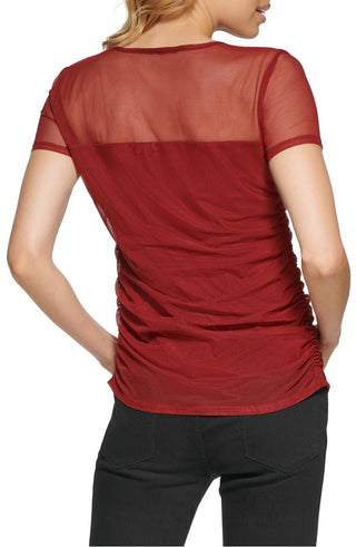 DKNY Women's Sheer Yoke Mesh Top Purple