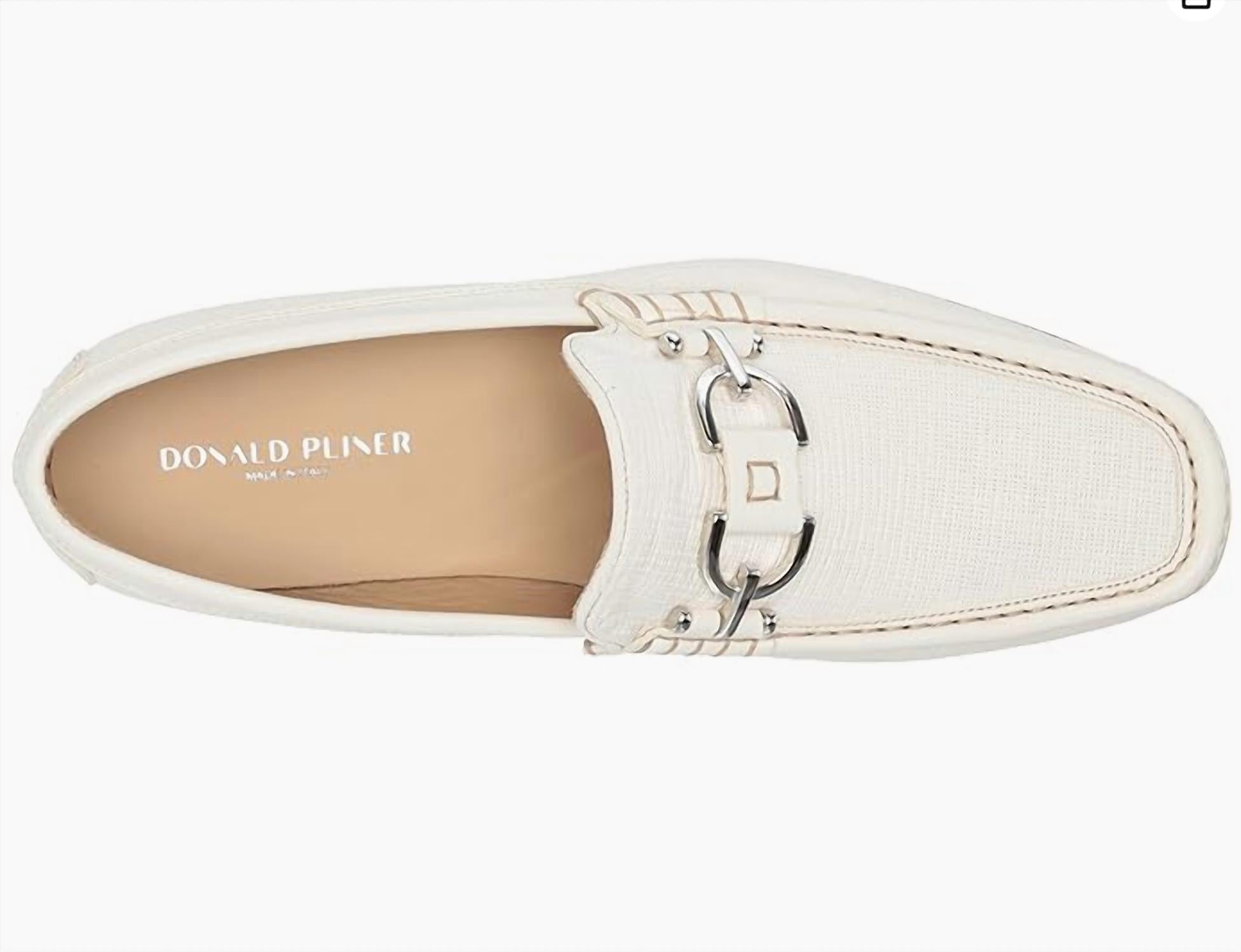 Step into sophistication with the Men's Dacio Leather Driver Loafer by Donald Pliner in a sophisticated ivory hue. Crafted from patent leather, these loafers are designed with a squared toe and a stylish block heel. Made in Italy, they offer quality and European craftsmanship. Ideal for those who appreciate sleek style and comfort, these shoes are perfect for any occasion.