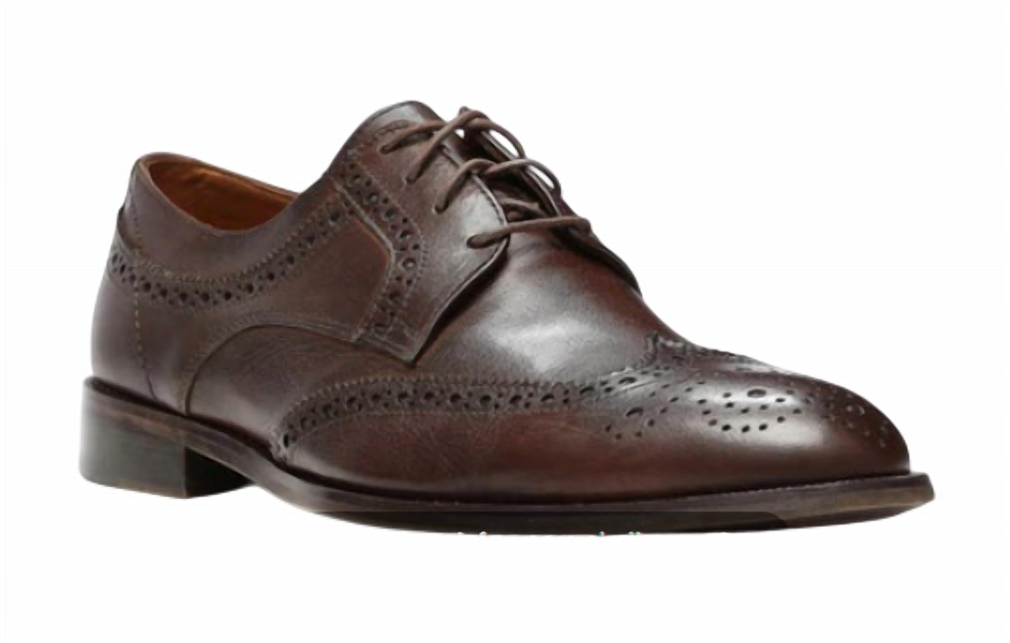 Introducing the Men's Damien Leather Wingtip Derby by DONALD PLINER, a sophisticated choice for any discerning gentleman. Crafted from luxurious leather, this derby features an elegant round toe and a stylish block heel. The cappuccino color adds a warm touch to your wardrobe, ensuring versatility with any ensemble. Designed for adults, this shoe embodies timeless style and functionality.