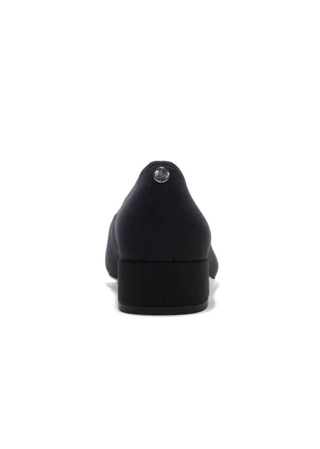 The perfect height for day to night. Crafted from stretch crepe, this slip-on pump embraces a sleek silhouette while the squared toe adds a contemporary edge. Designed with a low 1.25" block heel and a memory foam insole, it ensures comfort for all-day wear. Originating from China, it features a buffed leather outsole to seamlessly complement your attire.