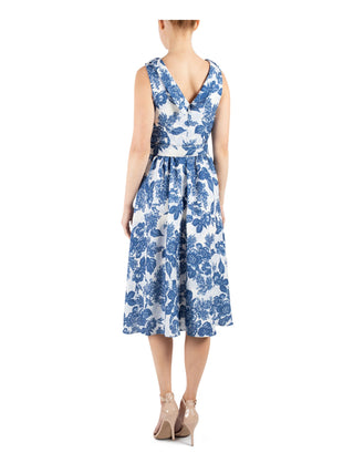 Donna Ricco Blue Floral Fit & Flare Dress, Belted, Size 14