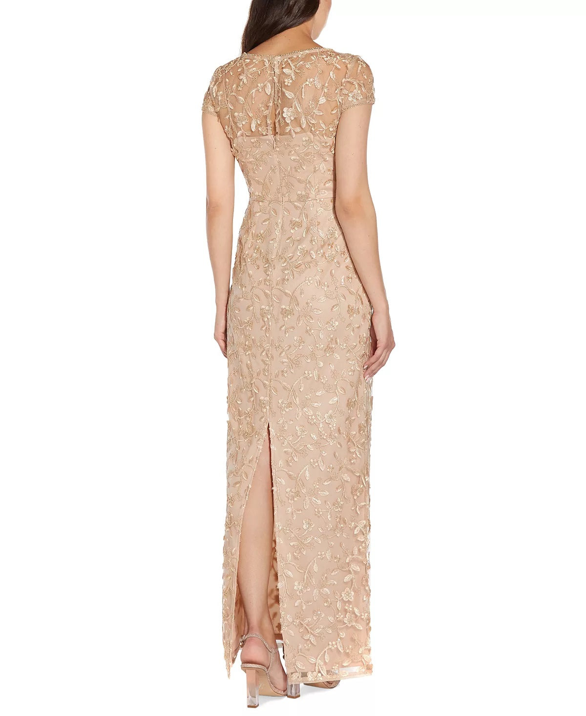 Embroidered throughout|Floor-length formal dress|Imported|Back zipper closure|V-neck|Lined|Connect with a stylist & get free expert advice online or in stores for your wardrobe