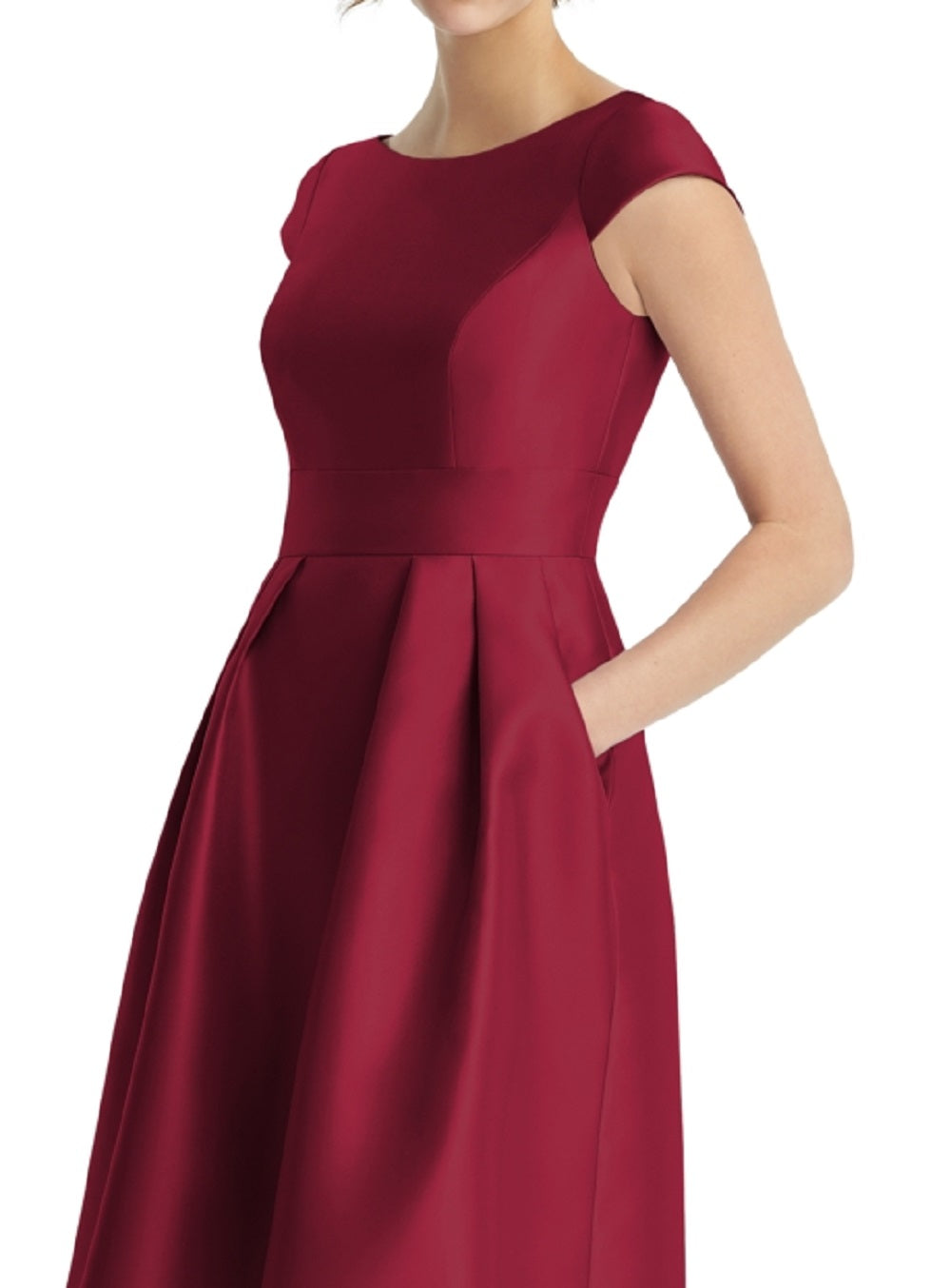 A classic essential| Alfred Sung's chic cap-sleeve dress showcases a flattering A-line silhouette and convenient slit pockets at the hips.| Approx. 39 long from center back neck to hem. Length is based on size 8 and varies 1/4 between sizes| Brand Runs Small; size up| Boat neck; A-line silhouette| Back zipper closure