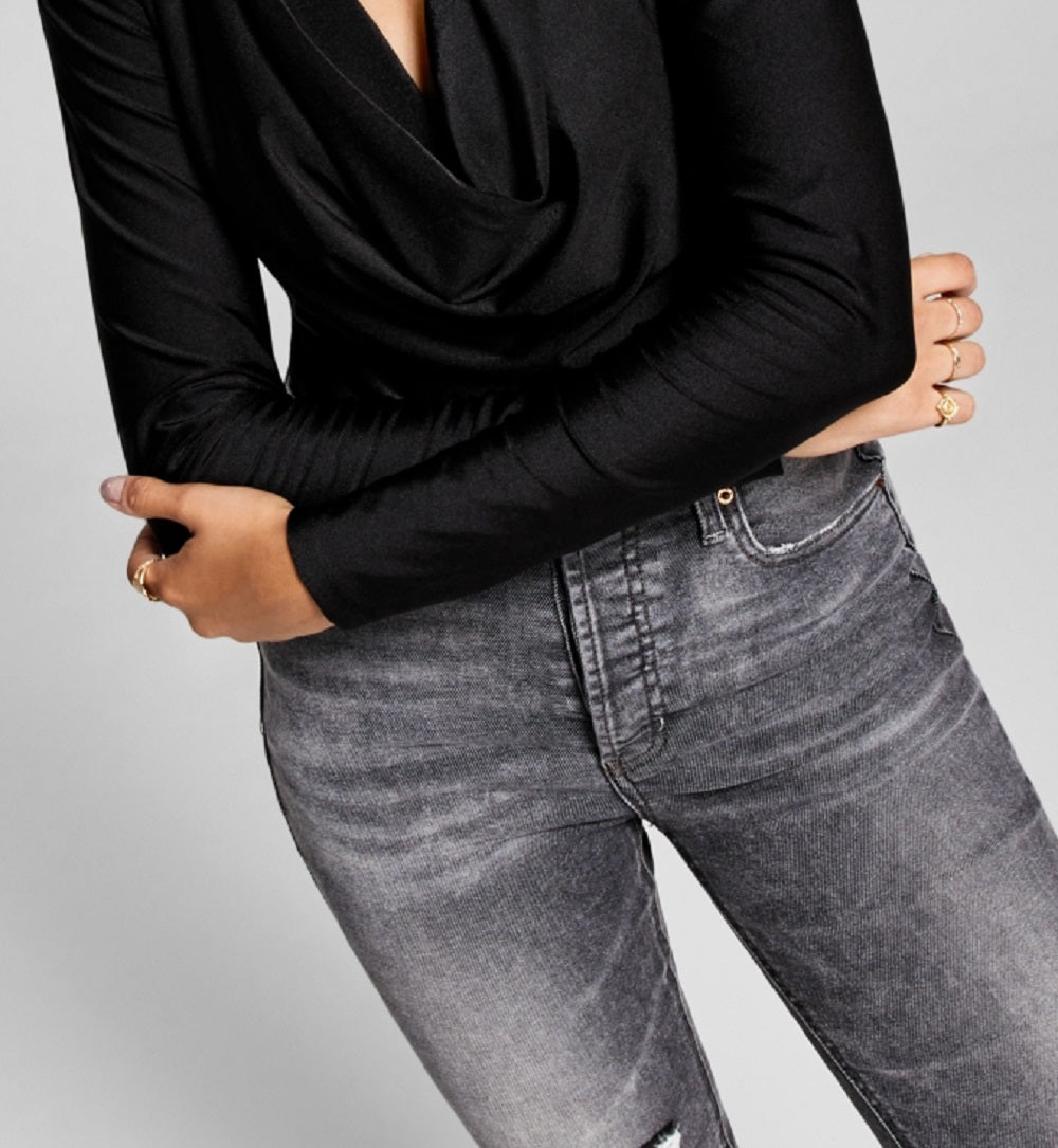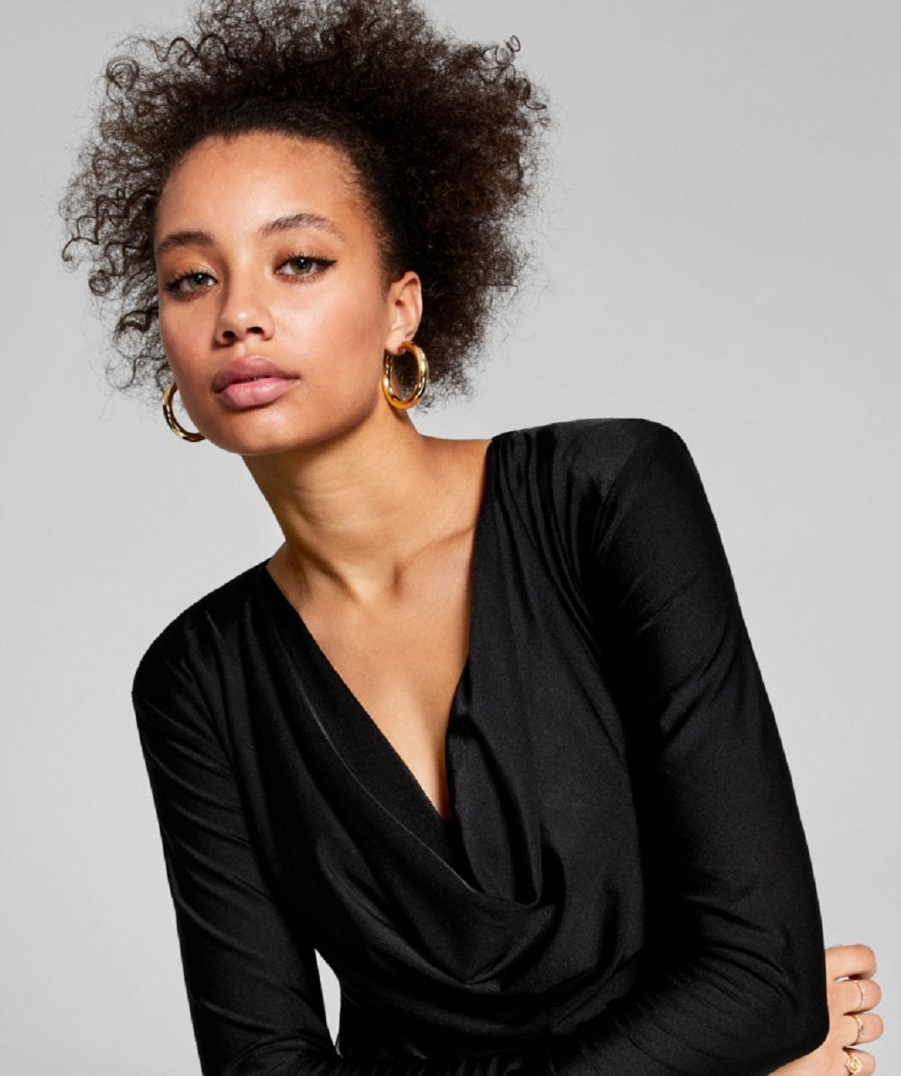 And Now This Woman's Slinky Cowl Neck Knit Bodysuit Black Size Small
