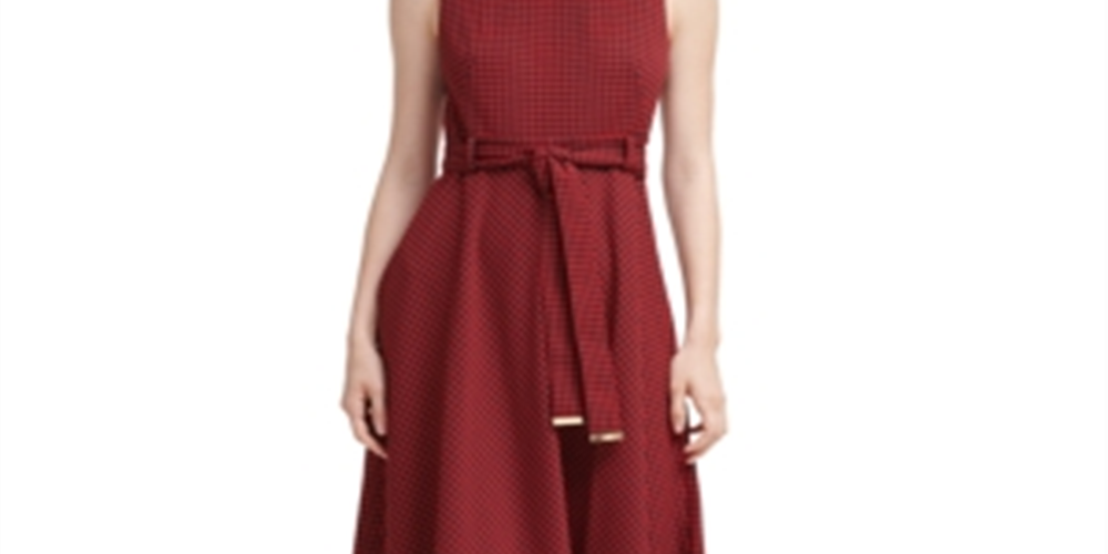 A self-tie belt defines the silhouette of this beautifully printed A-line dress from Calvin Klein.| Approx. 45 long from center back neck to hem. Length is based on size 6 and varies 1/4 between sizes| Runs true to size; order your normal size| Fitted through the chest and waist; structured A-line skirt sits slightly over hips| Scuba crepe; Stretchy and supportive| Round neckline; A-line silhouette| Back zipper closure