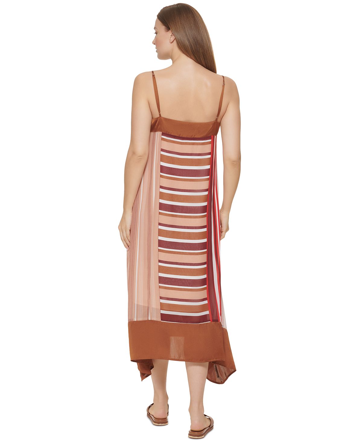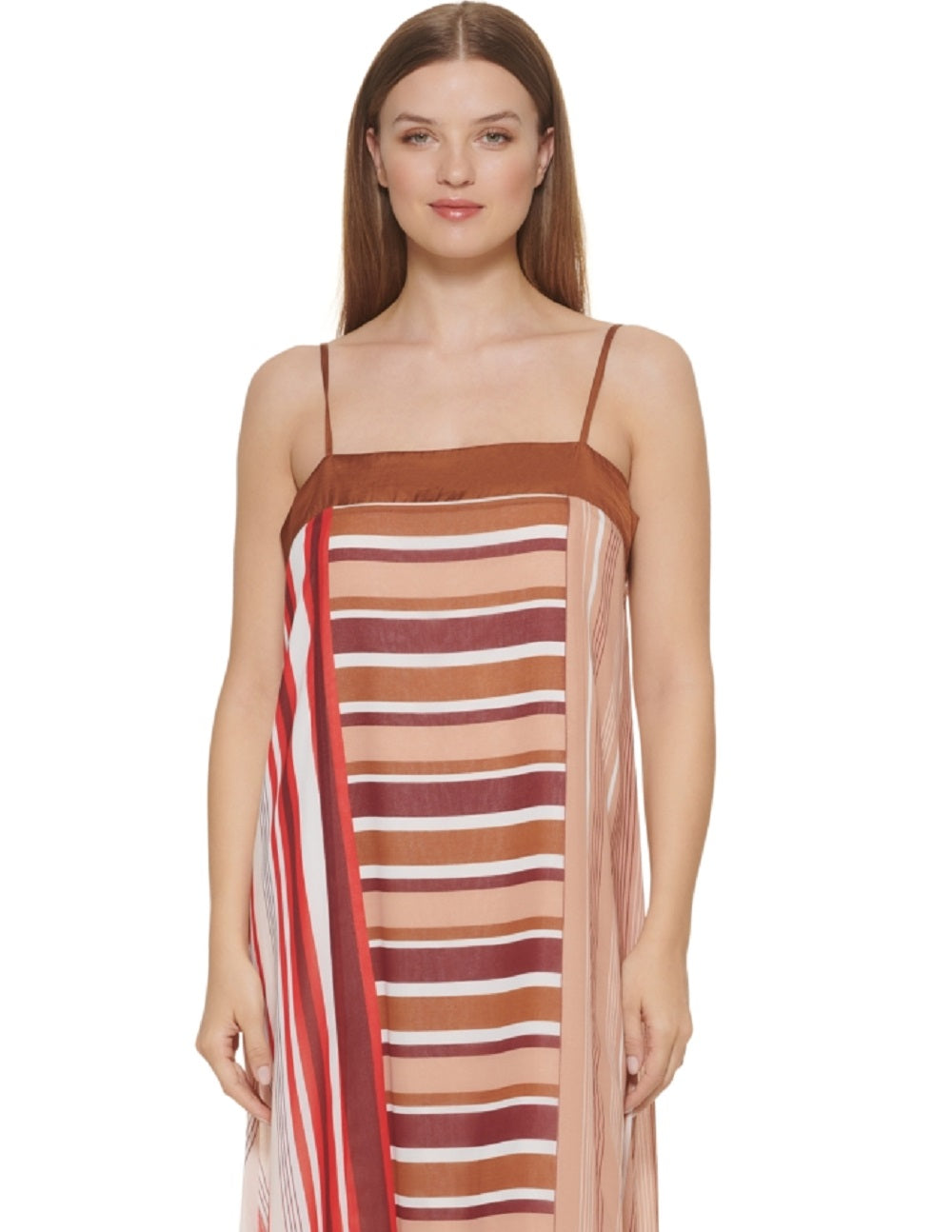 This slipdress comes with its own signature flow in a breezy| boxy cut with an asymmetric hem and multicolor| multidirectional stripes| Square neck Adjustable straps 100% polyester Machine wash| line dry Imported